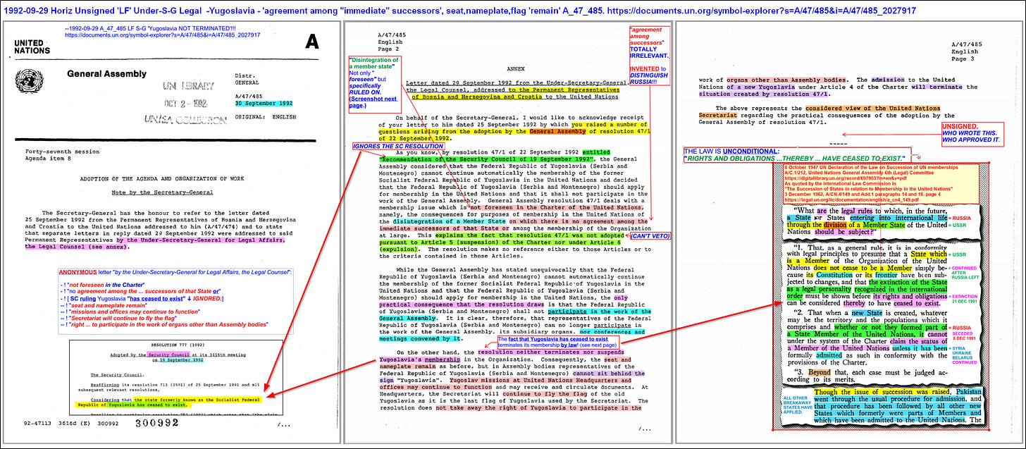 And what procedure was followed to “admit” Russia to UN membership? Oh, a letter!