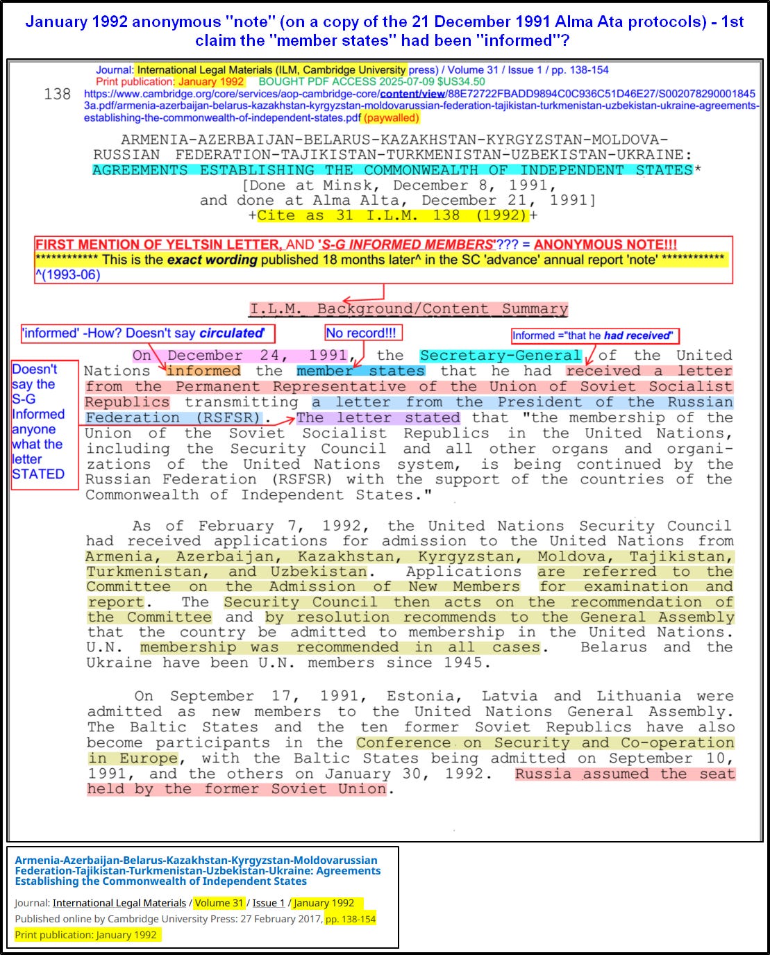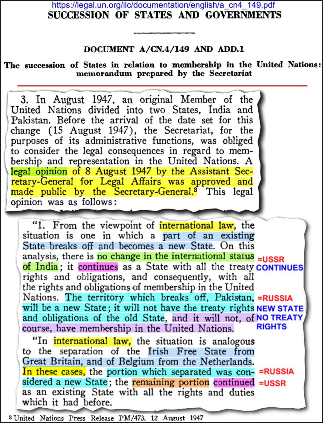It finally establishes that there was no legal basis whatsoever even claimed by Russia for the memberships and veto of the USSR - which expired by operation of law when the USSR ceased to exist.