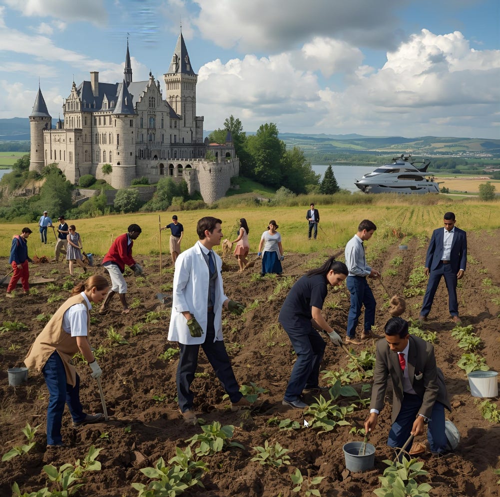 ├─ Taxes / social redistribution ≈ 5–10% (pensions, healthcare, partial redistribution)