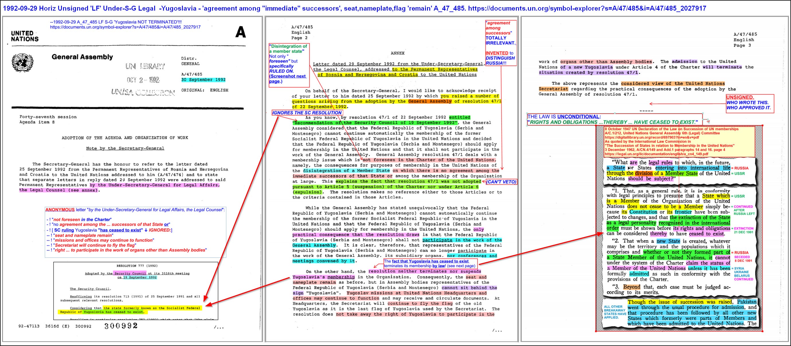 It finally establishes that there was no legal basis whatsoever even claimed by Russia for the memberships and veto of the USSR - which expired by operation of law when the USSR ceased to exist.
