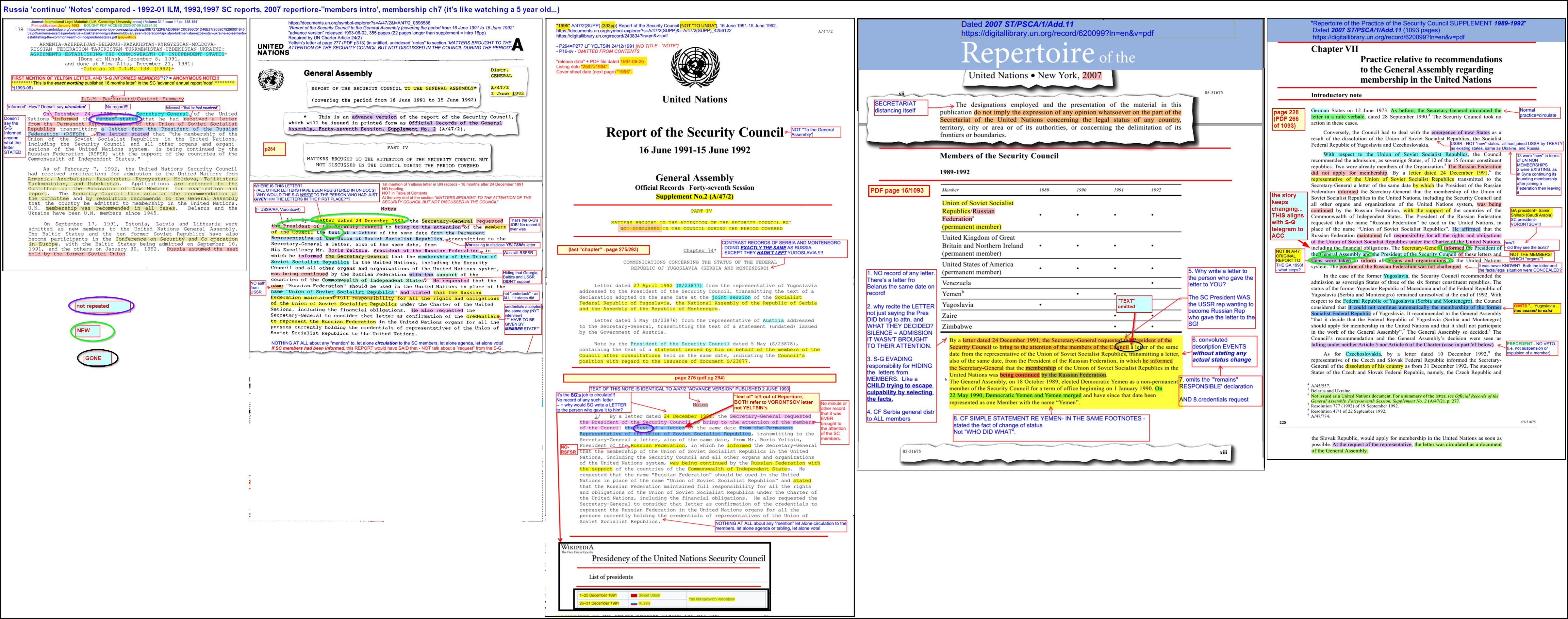 Here is a rough comparison of the lies through the years. Below is a link to my analysis of the lies built on those lies, by one former head of the UN Secretariat legal division, who was in the legal division in 1991. Evidence needs to be collected on the individuals responsible and appropriate legal measures taken.