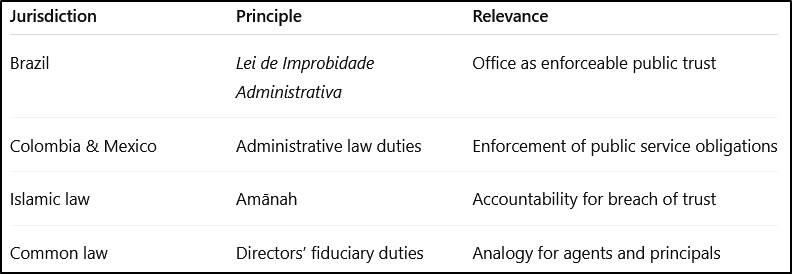 2.2 This relationship gives rise to fiduciary-type duties, consistent with agency law, corporate director duties, and comparative law (Brazil, Islamic amānah).