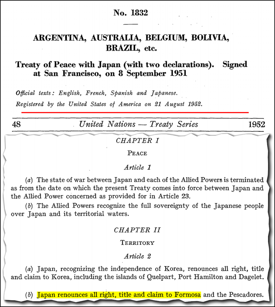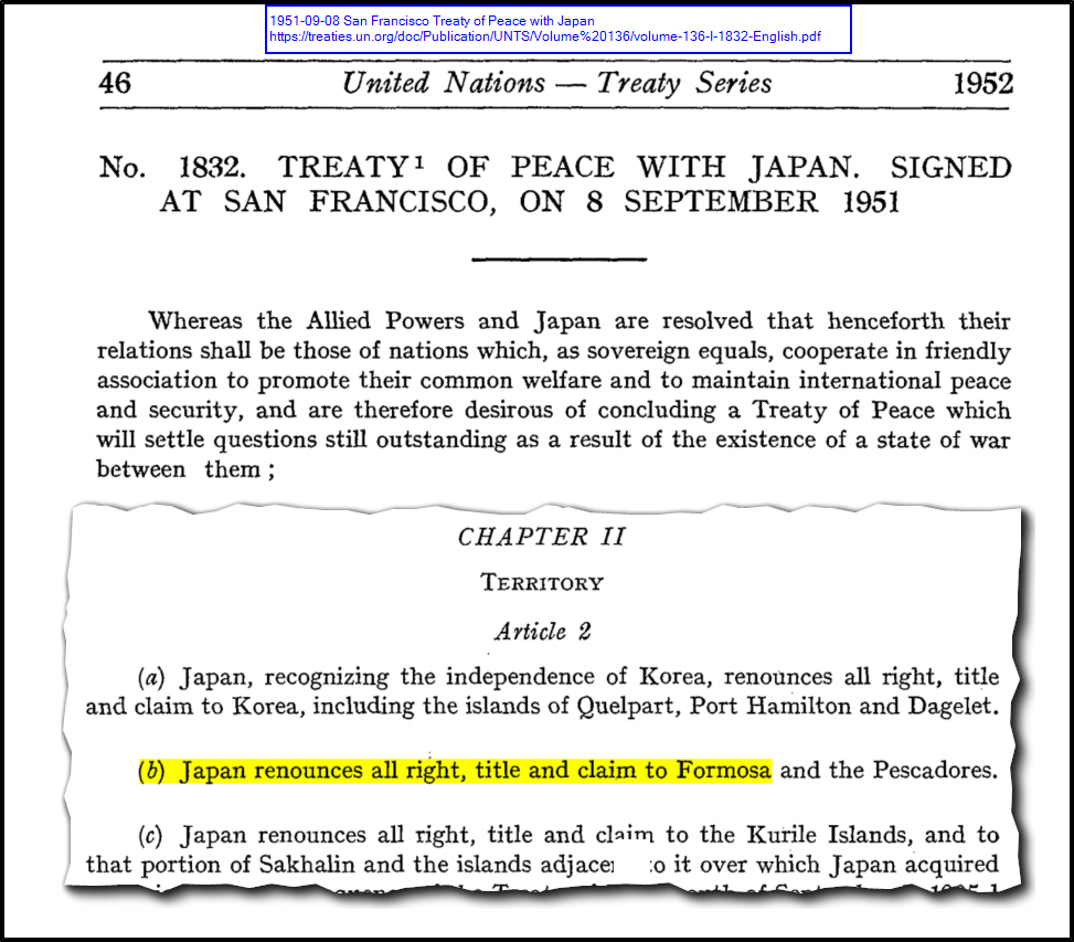 Therefore, no treaty established China’s (ROC or PRC) legal claim over Taiwan.