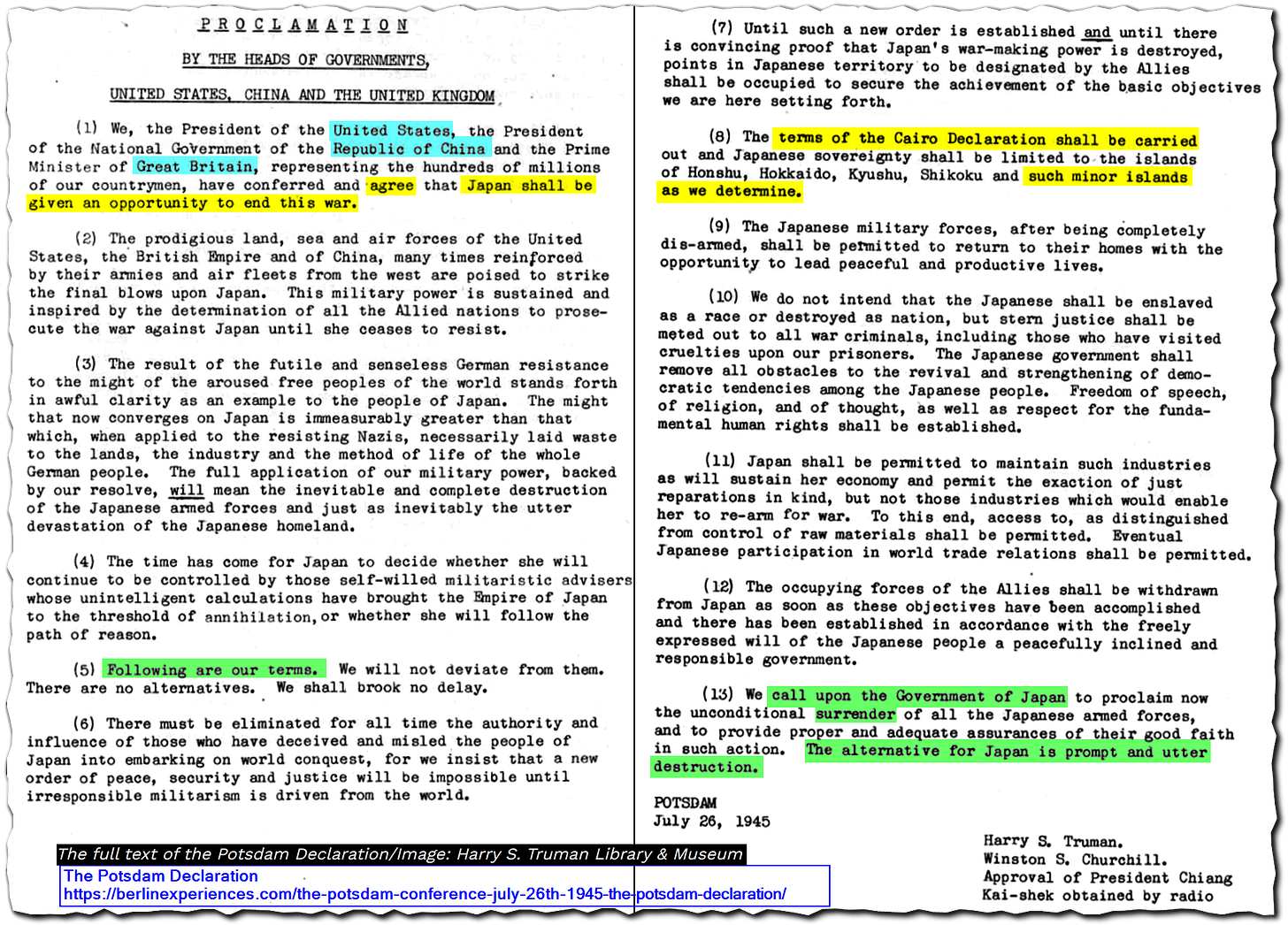 Potsdam Declaration, 1945.